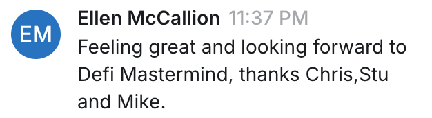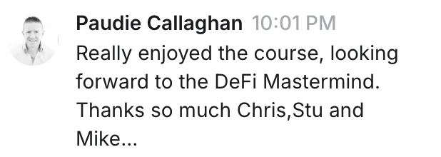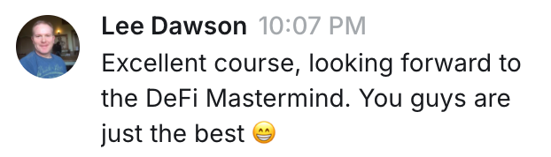 ~After 4 weeks, members will be added to the DeFi Mastermind for $97/month. Cancel anytime.